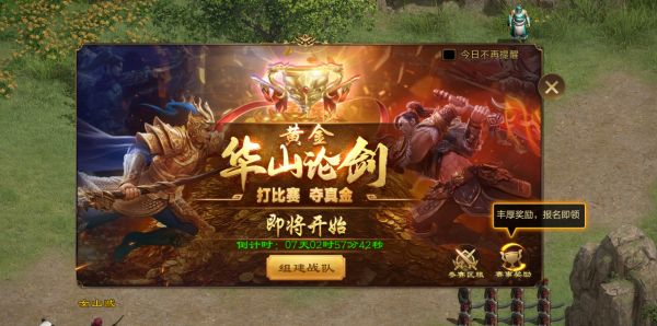 嘉年华赛事开拔!战鼓再次擂响,华山论剑与南北大战全面升级为黄金服限定版!6月6日到27日,嘉年华黄金南北大战开打!6月13日到7月11日,嘉年华黄金华山论剑重燃!只要在黄金任务中获胜,既可以抽取黄金胜者宝箱,有机会获得黄金酱酒等丰厚奖励!黄金赛事在即,一同拔剑——立不世之功!