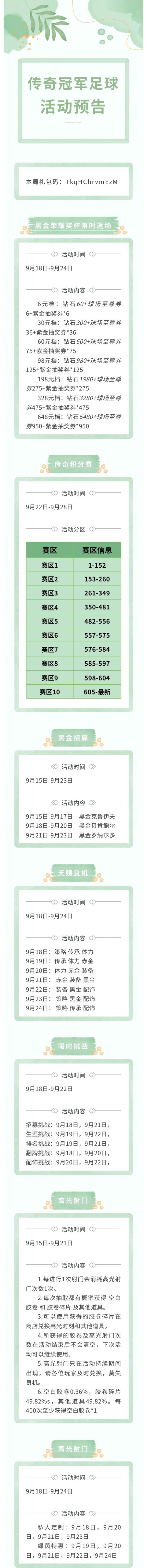 活动一:黑金荣耀奖杯限时返场;活动二:黑金招募;活动三:限时挑战;活动四:天赐良机;活动五:传奇积分赛;活动六:限时活动礼包;活动七:高光射门