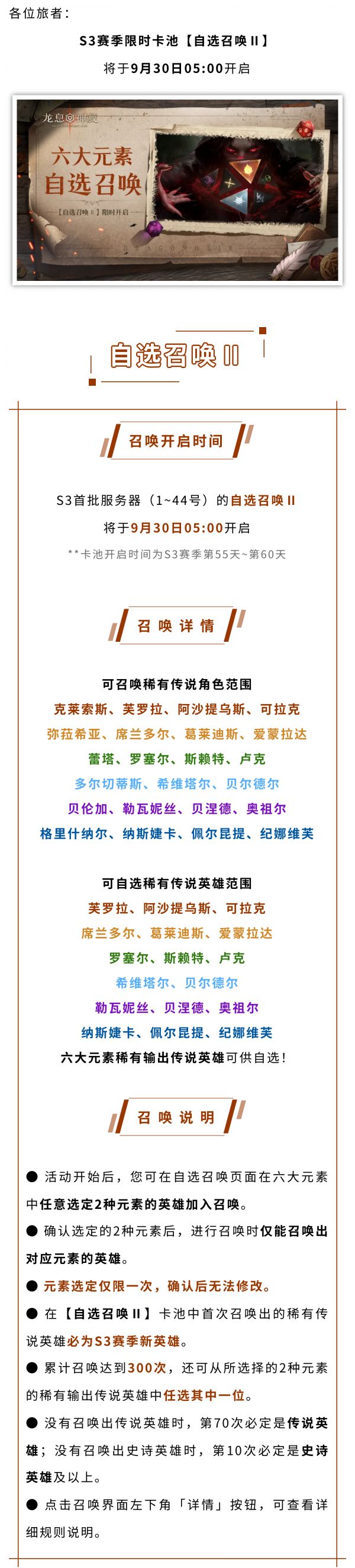 自选召唤Ⅱ丨六大元素稀有传说英雄可自选!