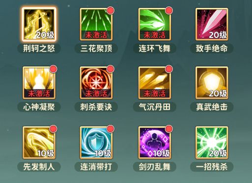 一转:点「致命绝手」,触发会心或致命时,有概率获得1个必杀点,用来快速点亮超必杀;再点「荆轲之怒」,提高释最小攻击力和释放武功获得的愤怒值。