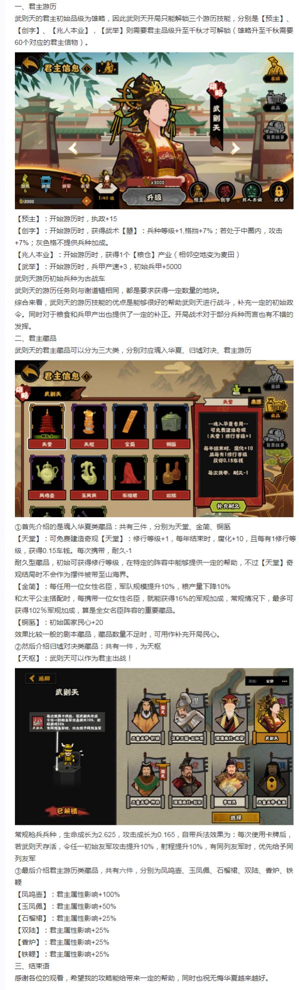 时间:2025-10-02 15:47写在前面:各位王上好呀,我是子在川上曰。今天带来的是全新君主武则天的详细解析,一共包括了君主游历、君主藏品两大板块