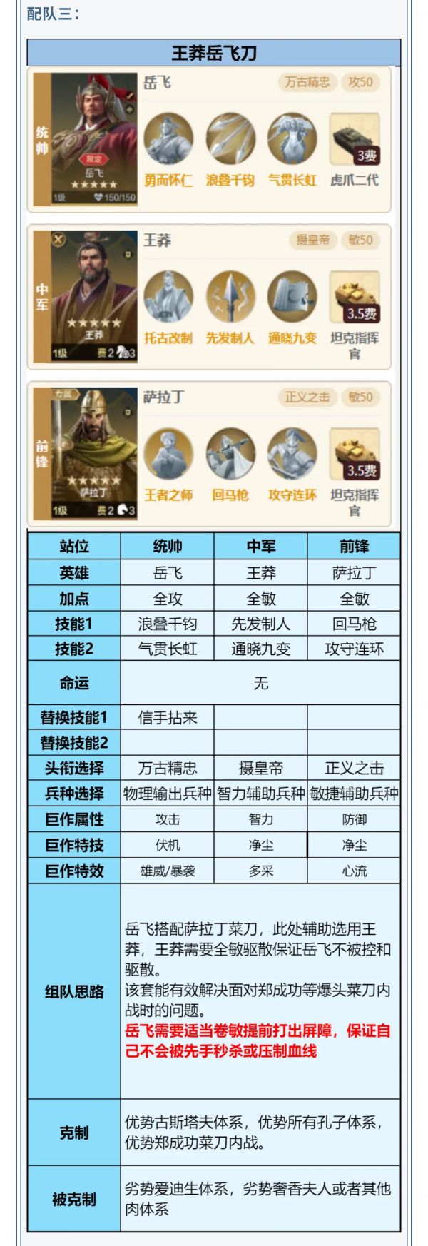 攻略分享丨新限定英雄-岳飞配队攻略分享