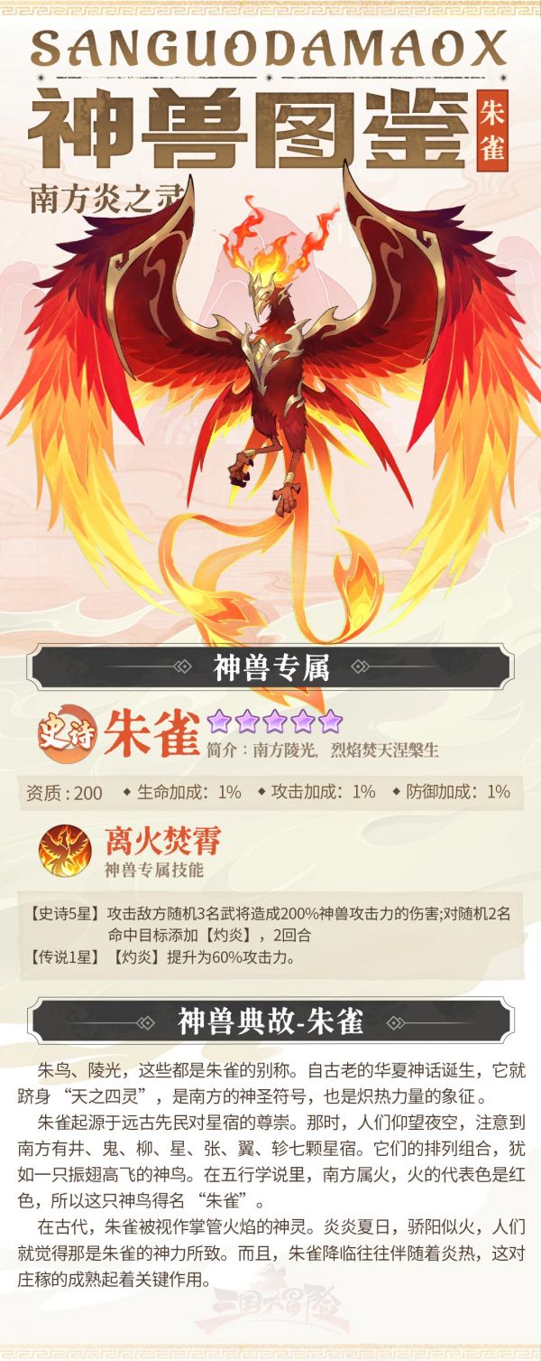《三国大冒险》神兽图鉴:南方炎之灵-朱雀
