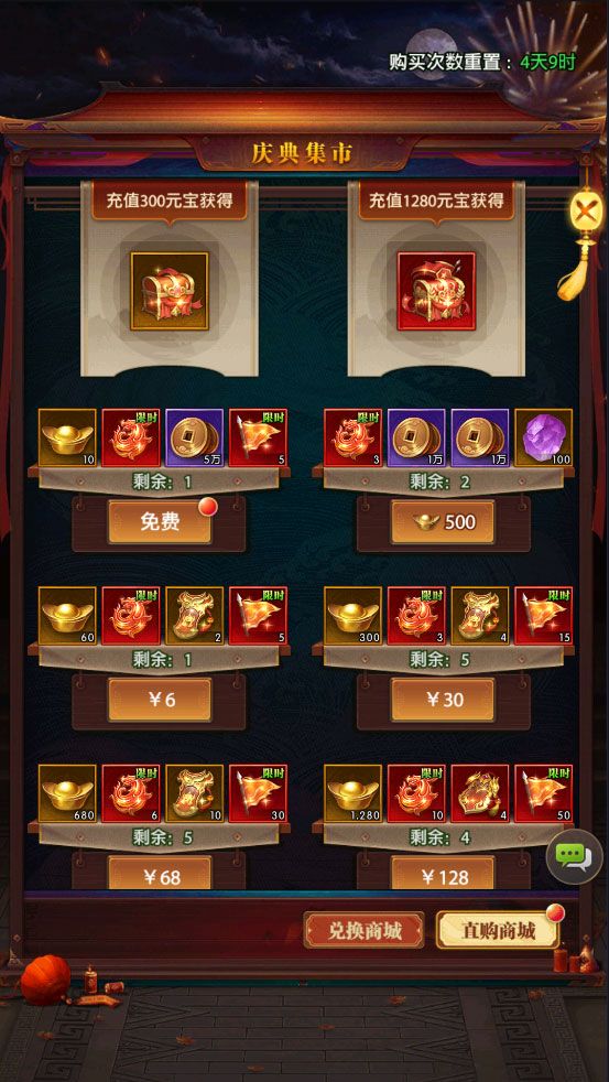 活动4:庆典集市限时开启--直购商城、兑换商城