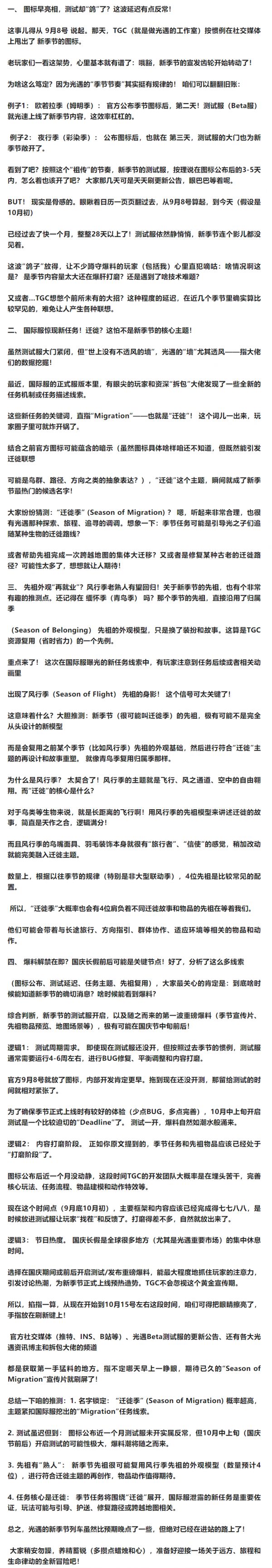 各位光之子们,最近是不是感觉空窗期有点长,跑图都有点提不起劲儿了?别急,新季节的“大饼”啊,官方其实早就开始画了,只是这“饼”烤得比我们预想的要慢那么一丢丢!
