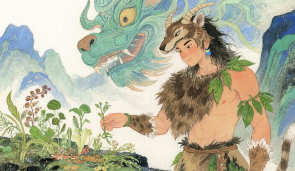 神农是少典的儿子,因为头上有牛角,人们都害怕他,他和母亲被安置在姜水。神农从小聪明,会耕种,长大后父亲让他去帮忙治国,找能治病和解决饥饿的药草。他一路看到妖魔肆虐、百姓受苦,决心救人。