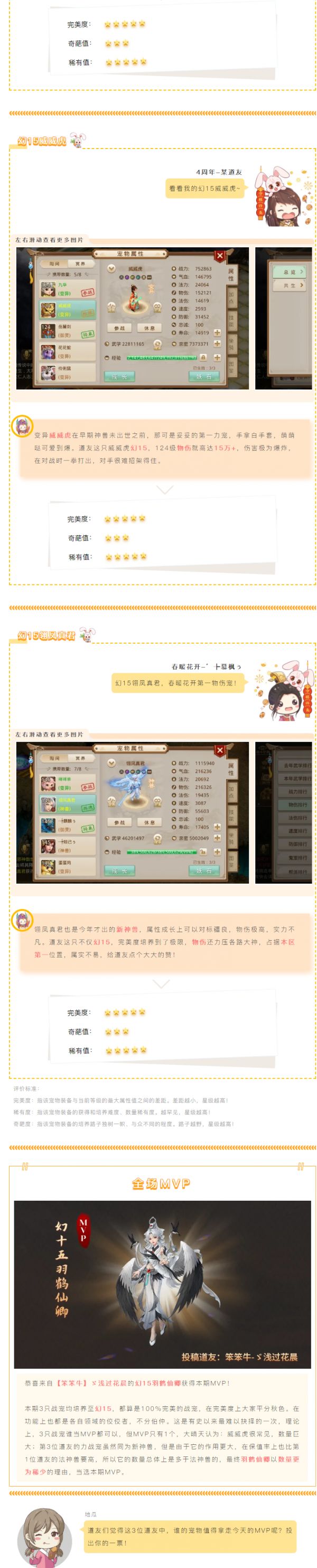 今天来看看道友们培养的极品牛宠~法伤20万+的幻15羽鹤仙卿,物伤15万+的幻15威威虎,还有物伤21万+的幻15翎凤真君!究竟谁能拿下MVP?