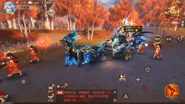 巡礼发起者可主动邀请周围蜀友共同驾车巡游,而靠近马车的蜀友们,界面右下将会浮现【共舞】按钮,点击就会自动跟随车队同步起舞,那灵动的舞姿便是大家同心护卫蜀山的象征,需注意共舞数量有限先到先得哦!
