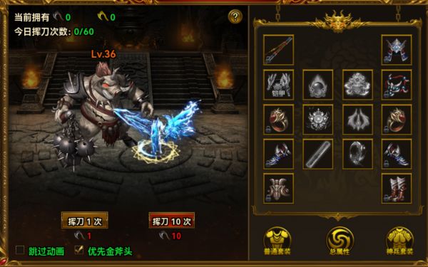 √ 使用斧头攻击白野猪BOSS可掉落极品装备◆ 每次攻击需消耗1把斧头◆ 金斧头攻击必触发「封魔神兵」极品装备掉落