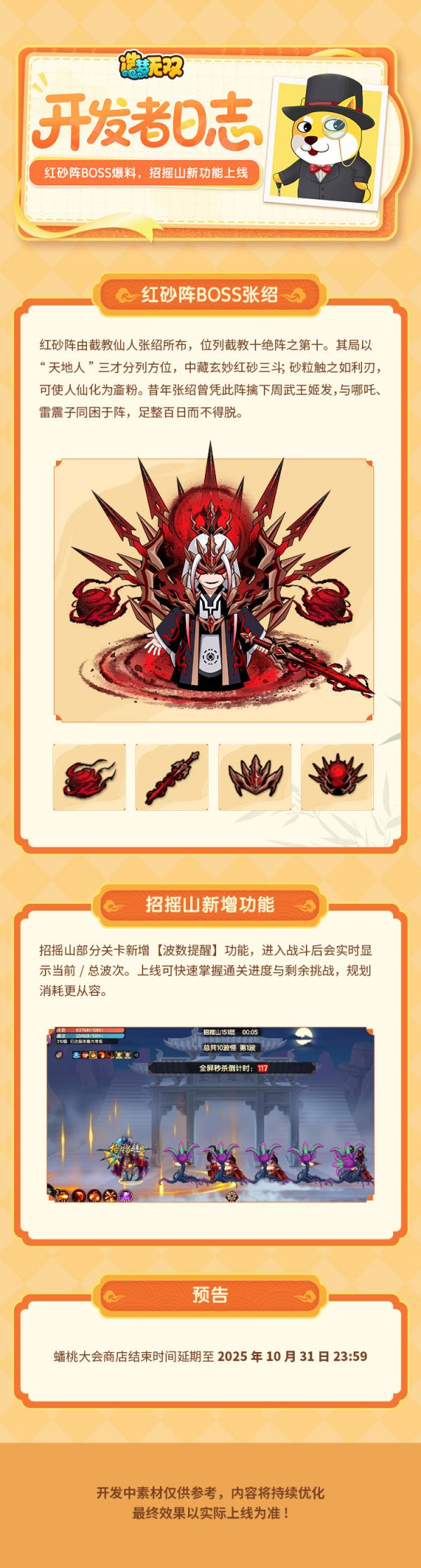 各位上仙下午好呀~下周游戏即将更新,快来看看此次更新有什么值得关注的爆料吧!红砂阵阵主【张绍】形象曝光!招摇山新增【波数提醒】功能,详情请锁定本期的开发者日志!