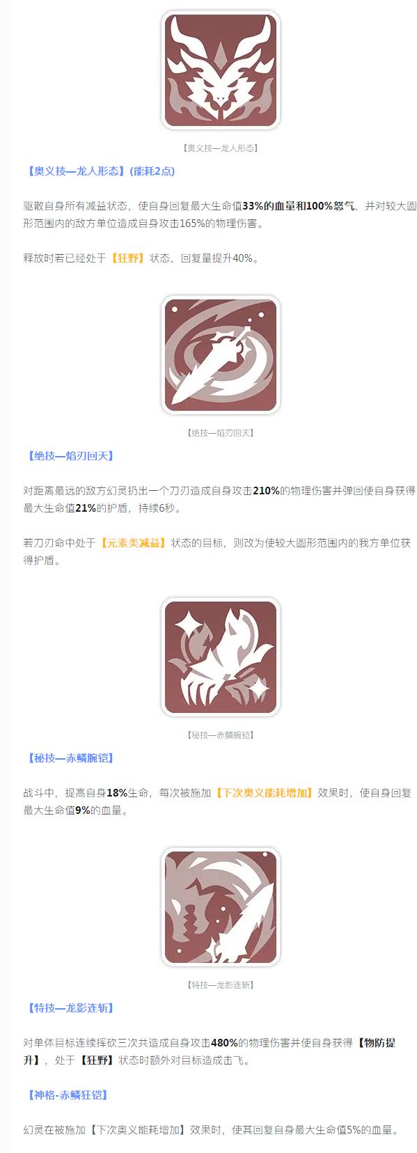 以下技能数值均为1级初始效果,最终技能效果及数值请以游戏内为准。