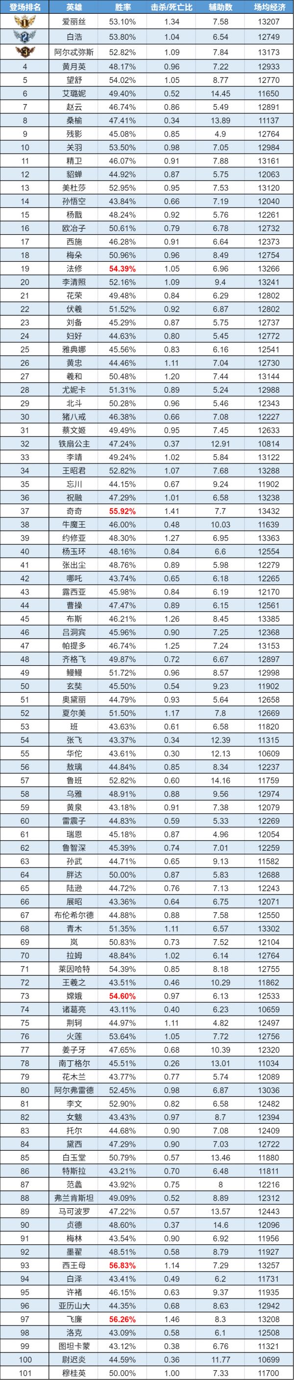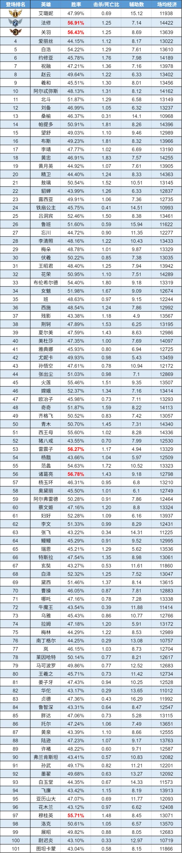 【高段位】法修人气跃升至第二,关羽受重做影响,热度飞升至TOP3,胜率同步挺进前三;法修蝉联两周场均经济之王。