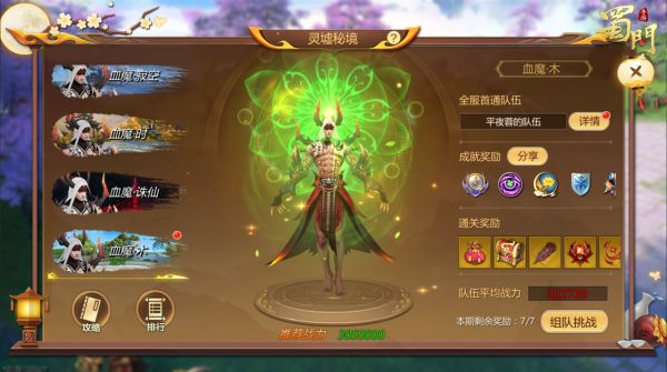 首次完成挑战副本的队伍将获得超稀有首通奖励!金色超稀有称号朽木生花以及玄云幻诀。同时还会有超有牌面的队伍展示和全服通知!为庆祝通关,该服务器所有玩家将获得首通全服奖励:玄云幻诀和聚灵丹。首次通关的喜悦全服共享!