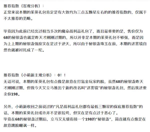 正常来说本期的茱英礼包肯定是有大致约为三点五颗星左右的的推荐指数的,仅属于不太推荐的范畴。