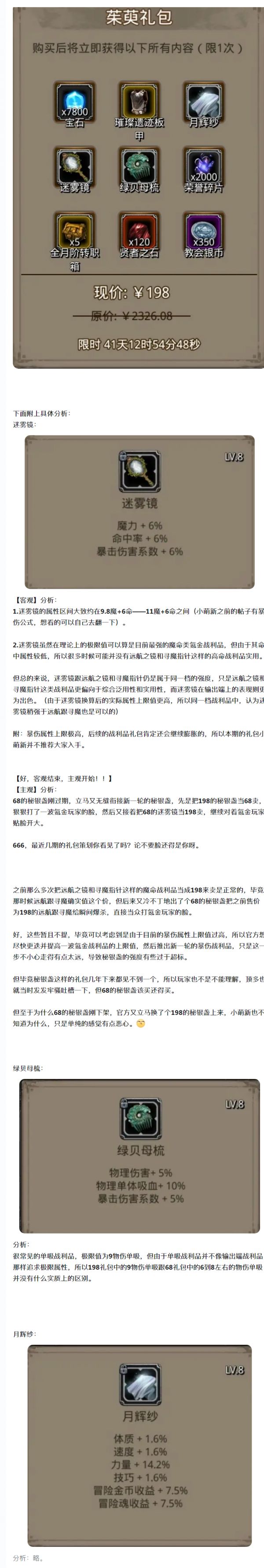 【攻略分享】桂香礼包——战利品分析!!