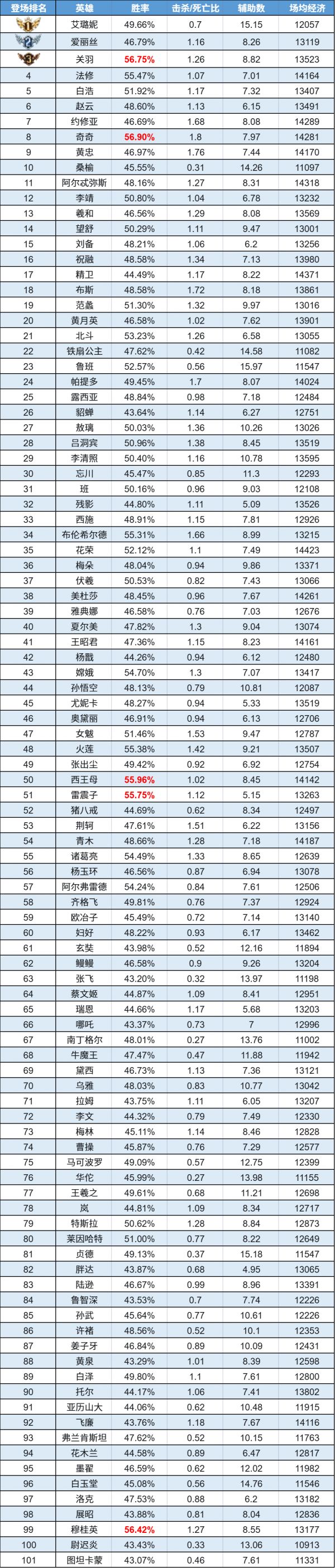趣味数据|关羽登ban位之巅 飞廉低段理财第一