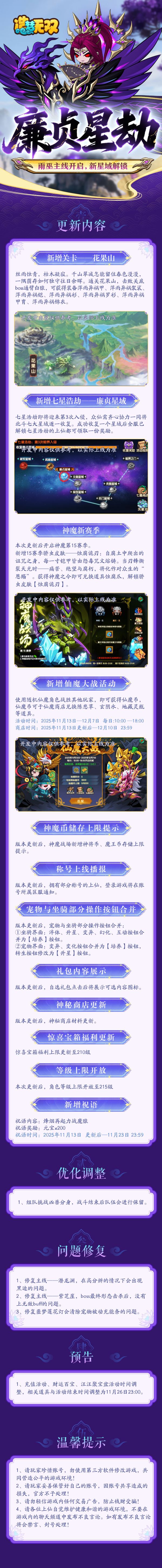 11月13日公告|雨巫主线启程 廉贞星域上线
