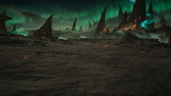 最令人窒息的是那些扭曲的怪兽残骸。它们并非冰冷的雕像,而是在激战中落败、失去生命后化为岩石的怪兽本体。这些姿态各异的沉默身躯,在永恒的真空中无声飘荡,共同构成一幅残酷的宇宙坟场画卷。