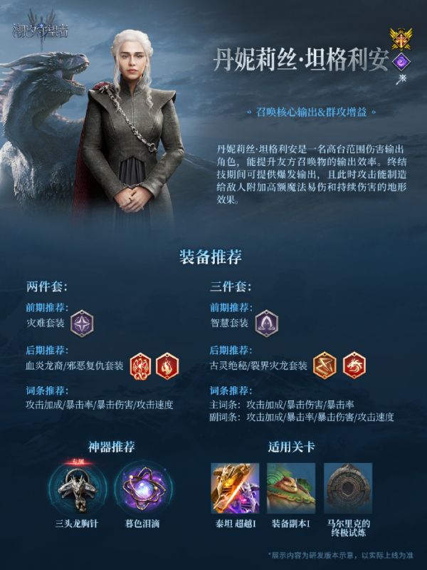 ◆联动英雄丹妮莉丝·坦格利安仅能在真龙远古召唤卡池被召唤到,其他卡池都无法获得。