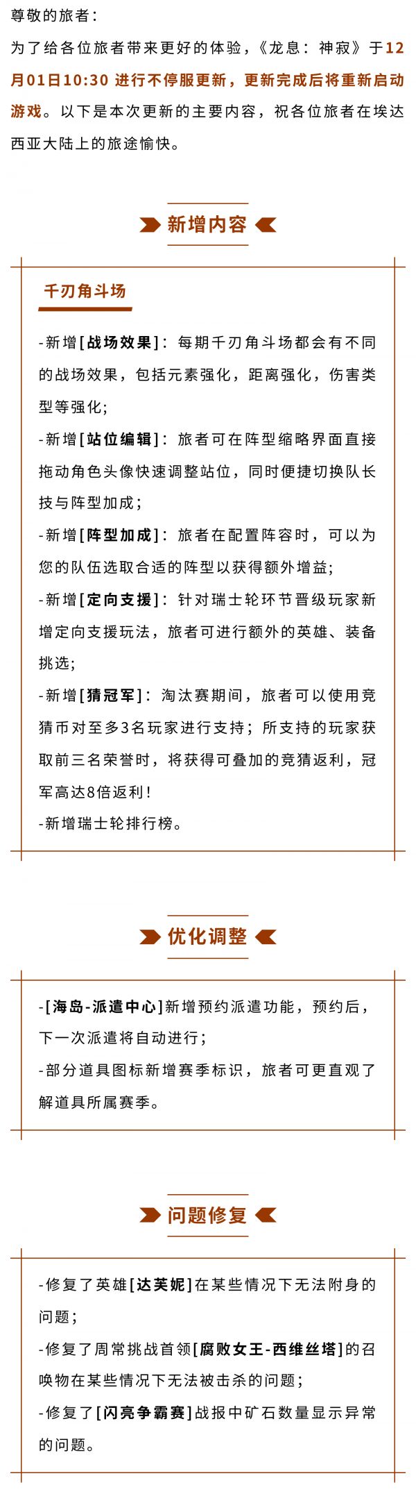 《龙息:神寂》6月19日更新公告及功能异常说明