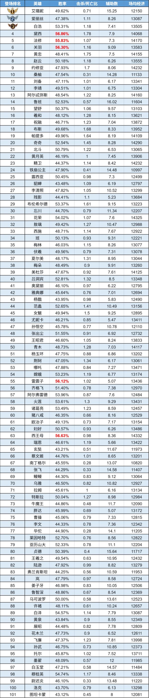 【高段位】黛西热度稳步上分,一举拿下胜率TOP1,关羽胜率退居第三;西王母闷声发大财,登上均场经济榜首。
