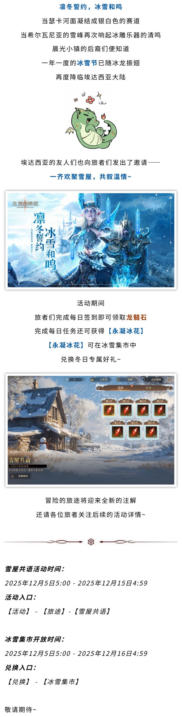 龙息资讯|雪屋共语活动将于12月5日上线~