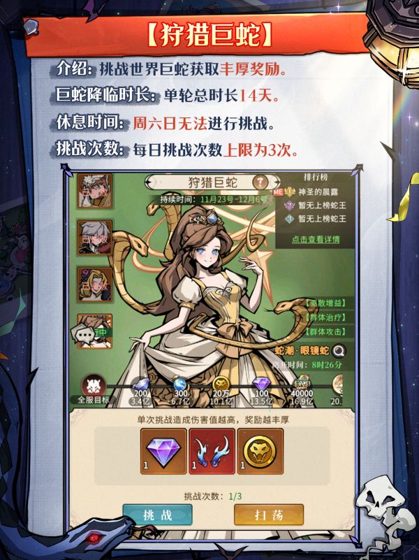 今天灵儿就来“揭秘”,这个暗黑童话世界可不是只有战斗!我们准备了整整六大特色玩法——从轻松收菜的“丰饶地牢”,到考验阵容深度的“哀嚎尖塔”,再到限时挑战的“狩猎巨蛇”……甚至还有“蛇蛇连一连”这种神奇小游戏!