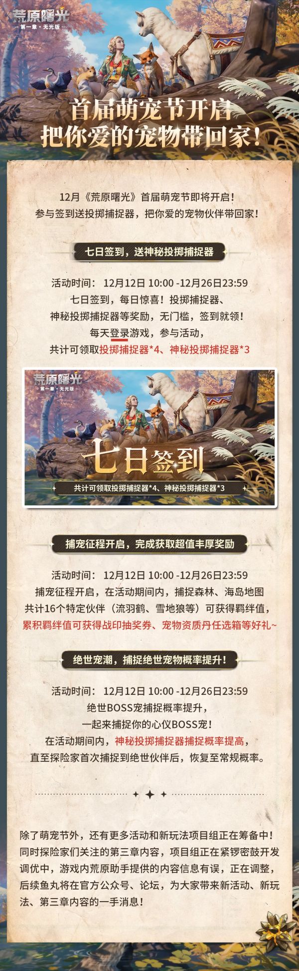 《荒原曙光》首届萌宠节开启 把你爱的宠物带回家