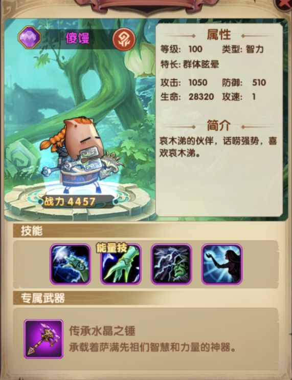 傻馒:推荐养,关卡PK需可以作为控制英雄,且可以完美搭配哀木涕专武30。
