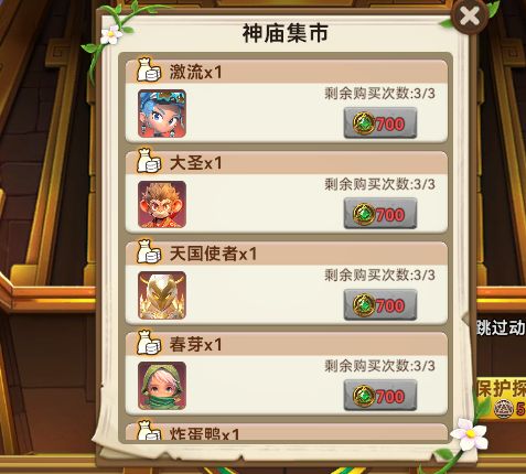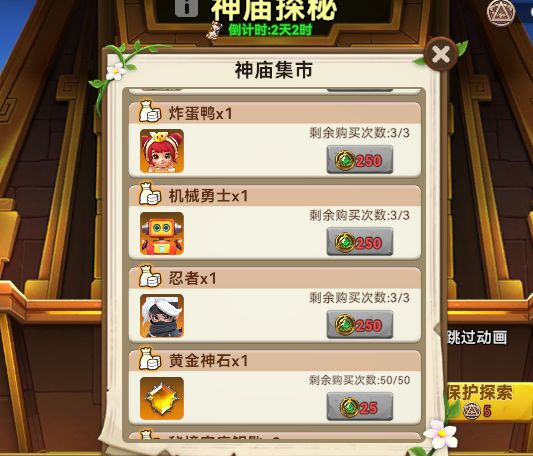 5、探索获得的神庙金币,可以在神庙集市兑换奖励。