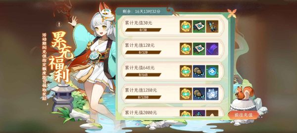 活动内容:活动期间,累计充值金额达到指定数量可以领取充值奖励。
