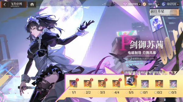 剑御苏茜是一位全新的攻击型伙伴。普攻后攻击敌方后排,造成物理伤害。自身任意行动前获得随机数量的【磁轨刃】,每把【磁轨刃】使持有者攻击提升 ,最多持有10把。