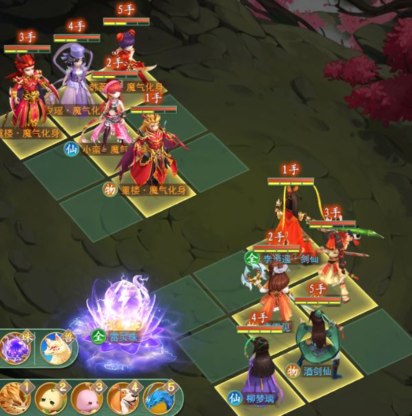 李逍遥(3号位):携带“武神”技能,首要目标为魔楼。首回合不使用绝技,在第二回合由瑕清除韩菱纱后对魔楼进行使用,极大限制其爆发。