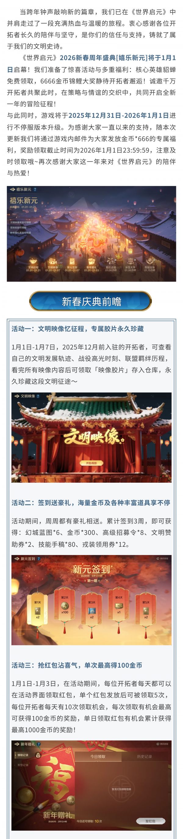 新活动前瞻丨新春周年盛典开启,核心英雄免费领,6666金币等你赢!