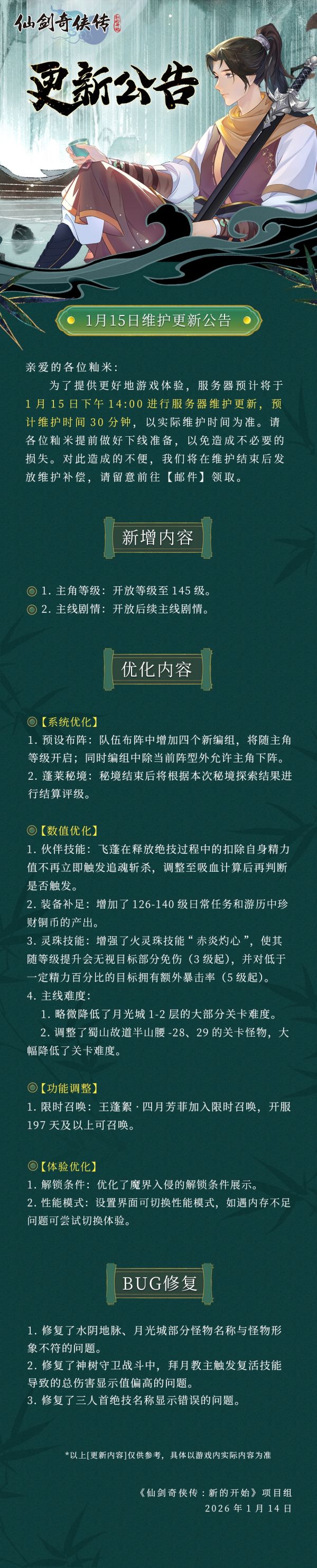 1月15日维护更新公告