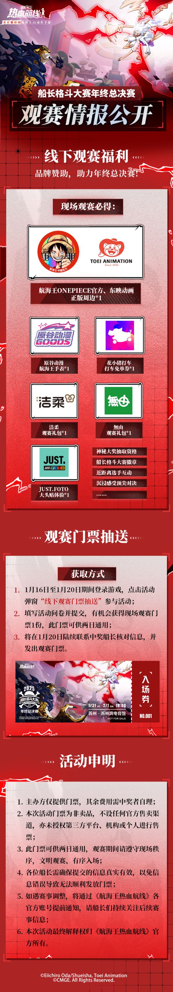 此次盛会,要感谢航海王ONE PIECE官方 ;东映动画以及我们强大的“同盟”:原谷动漫 ;花小猪打车 ;洁柔 ;无由 ;JUST.FOTO 提供的丰厚宝藏!