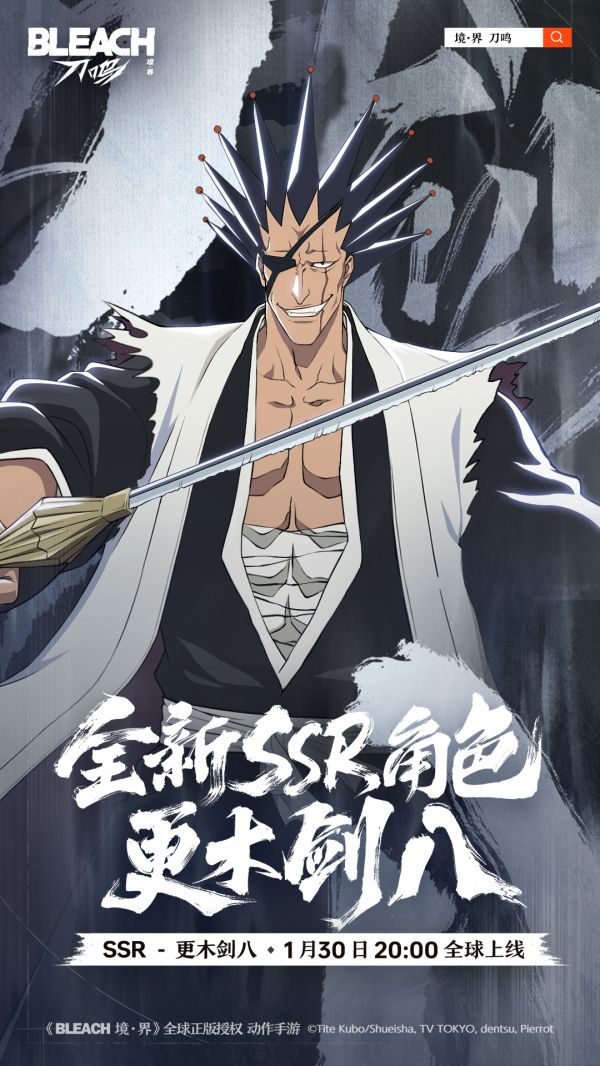 全新SSR角色「更木剑八」即将于1月30日正式上线!