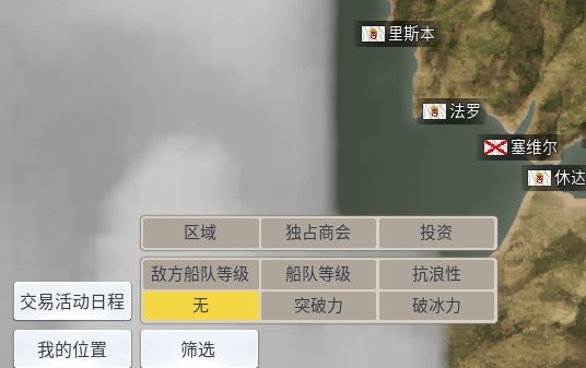 想知道已发现航路的条件,点开【世界地图】左下方的【筛选】菜单就能查看。