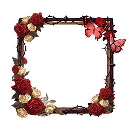 「蔷薇窗·头像框」与「荆棘廊·聊天框」,‌红玫瑰与白玫瑰相映,荆棘缠绕间蝴蝶点缀,勾勒出浪漫精致的边框。