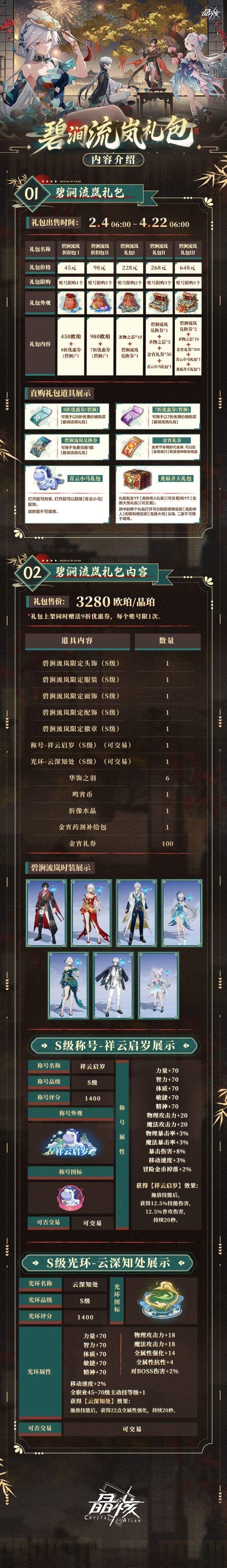 2月4日「金宵踏瑞」版本更新后,「碧涧流岚」相关礼包将同步上线!