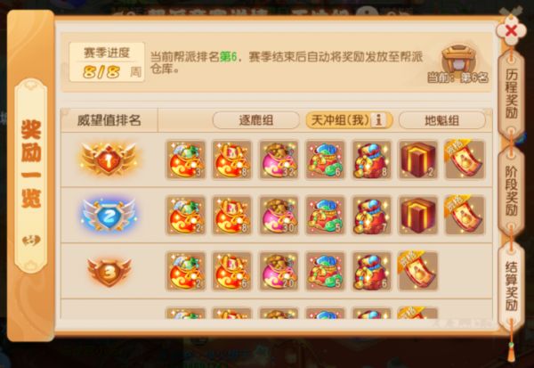 地魁组:天冲组20名之后的帮派及其他未到达天冲组条件的帮派则会分至此组,地魁组的前3名可获得下赛季晋级天冲组的资格。