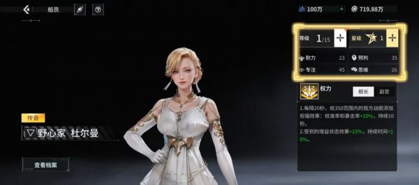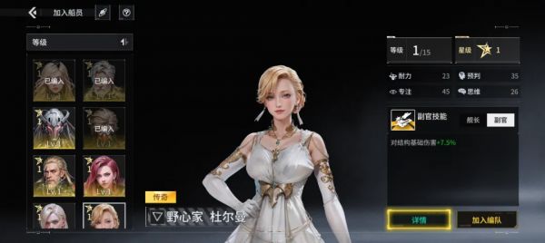 ​点击详情,再点击右上角的加号图标,可对船员进行升级或升星以提高船员属性。升级需要消耗作战数据。作战数据分为三种品质,品质越高,使用时给船员增加的经验值越多。所有船员初始星级一致,可以通过升星系统提升至最大星级。
