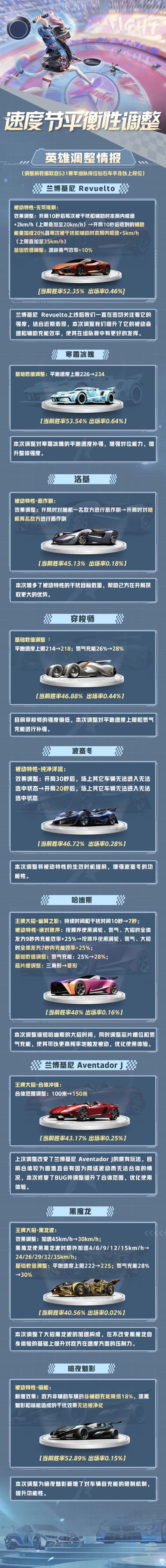 《王牌竞速》速度节季中平衡性调整