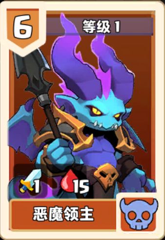 恶魔领主,种族归属--‘亡灵’,待机值6,1级基础属性1|15,满级基础属性2|25。恶魔领主的基础攻击数值并不高,主要是依靠技能打伤害和压制效果,所以我们要凭借恶魔领主的高额基础血量,保证恶魔领主的存活,把恶魔领主的技能效果最大化发挥。