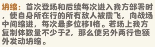 该技能是恶魔领主的主要控制技能,每回合恶魔领主会使自己所在行上的所有敌方随从,向该行的中间移动一格,可有效的减缓敌方前排随从进攻,也间接把敌方后排随从的身位移前,便于我方击杀。(注:如果被移动的随从前格或后格有随从,则会被阻挡,不会产生移动效果,以及敌方随从本身就位于中间位置,也不会被该技能影响)若我方复制体(恶魔领主另一技能所产生的召唤物)有2个及以上,那么全场敌方随从都将被恶魔领主移动!!