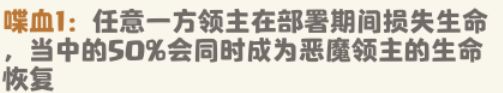 该技能是恶魔领主达到2级习得的技能,当双方领主在自身回合损失生命时,恶魔领主将恢复生命值,进一步提升了恶魔领主的战场能力。