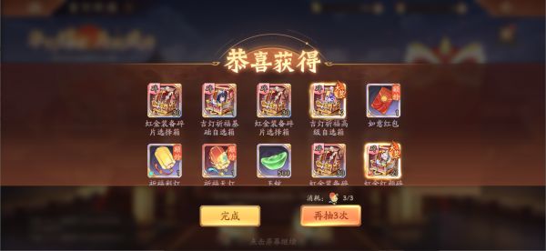 1.活动期间可以消耗2种不同的道具分别进行"祈福迎新"和"悬灯祀天",每次祈福消耗1个道具,至少能在奖池中随机获得1件活动道具,同时有概率额外获得道具或分享红包等额外奖励。