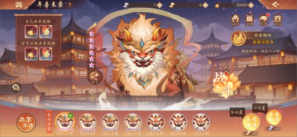 2.年兽战斗分为三场,若全胜则成功击败年兽,获得击败对应年兽的奖励。