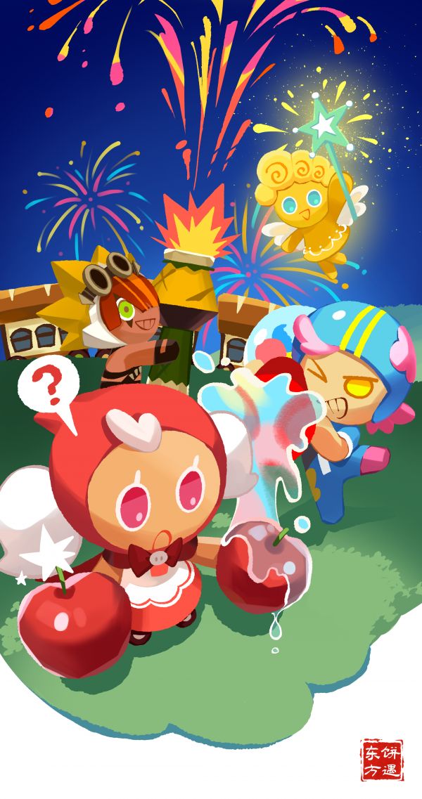 果冻森林的夜空被烟火点亮,饼干人把一整年的愿望托付给绽放的刹那。