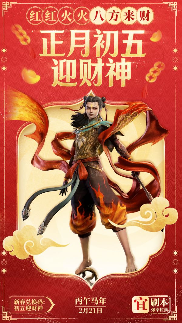 我们为亲爱的指挥官们准备了初五专属兑换码礼包【初五迎财神】,记得及时兑换哦~